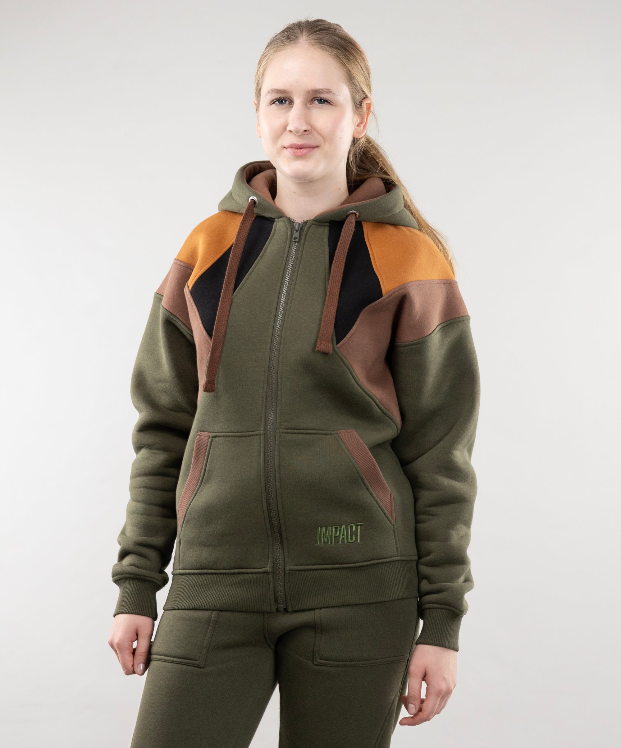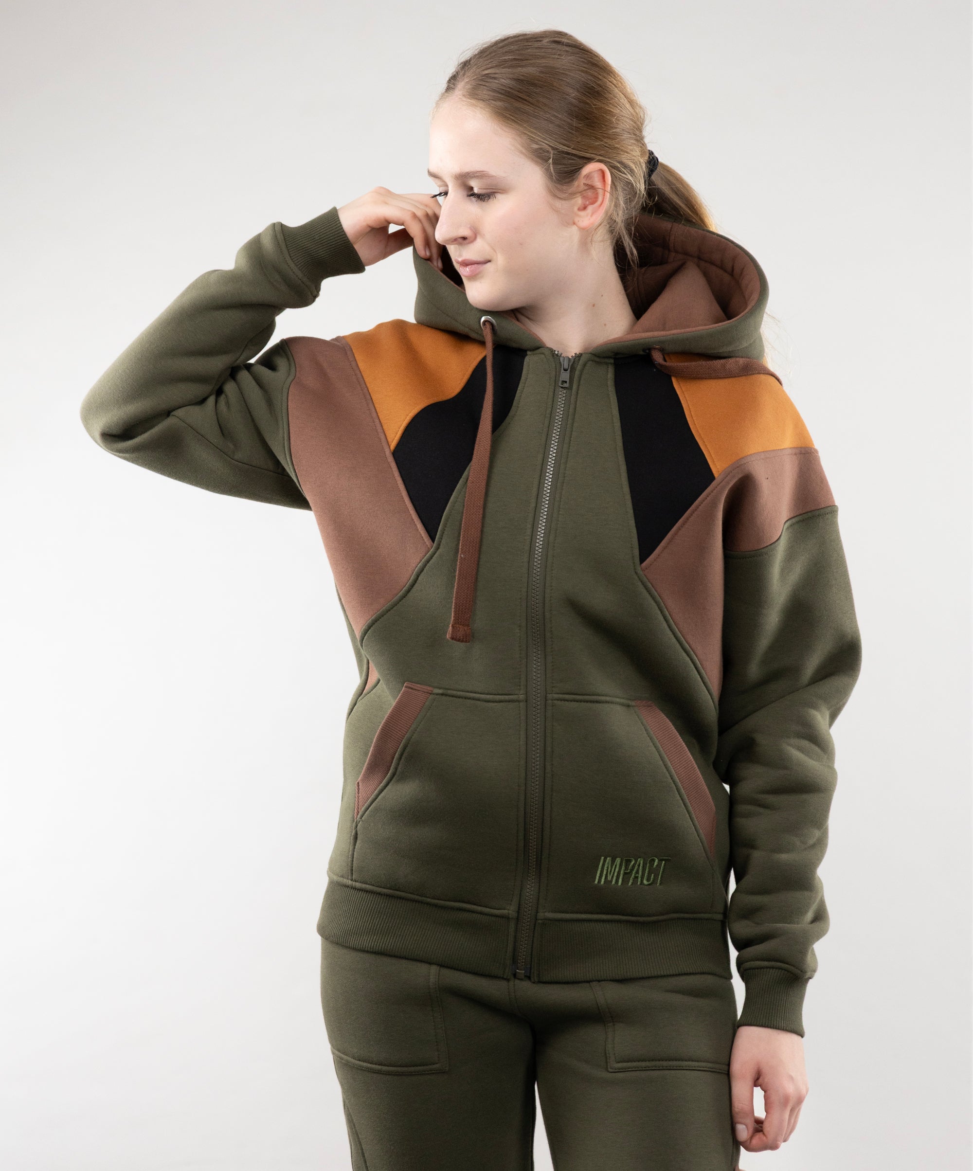 This is a unisex model, suitable for both women and men. "Rio" zip-up hoodie goes well with sports pants, cotton joggers, and cropped pants from "Impact".