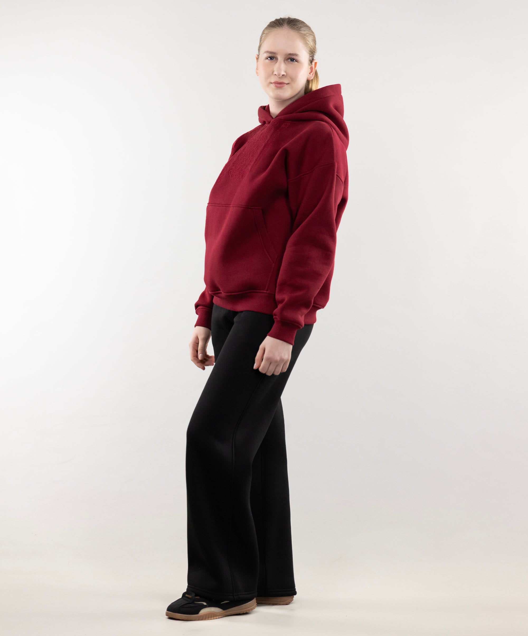 Brushed knitted fabric, with warm fleece on the backside. Three-thread fleece shows excellent performance in use, retains its shape and color after washing, and does not form pills.