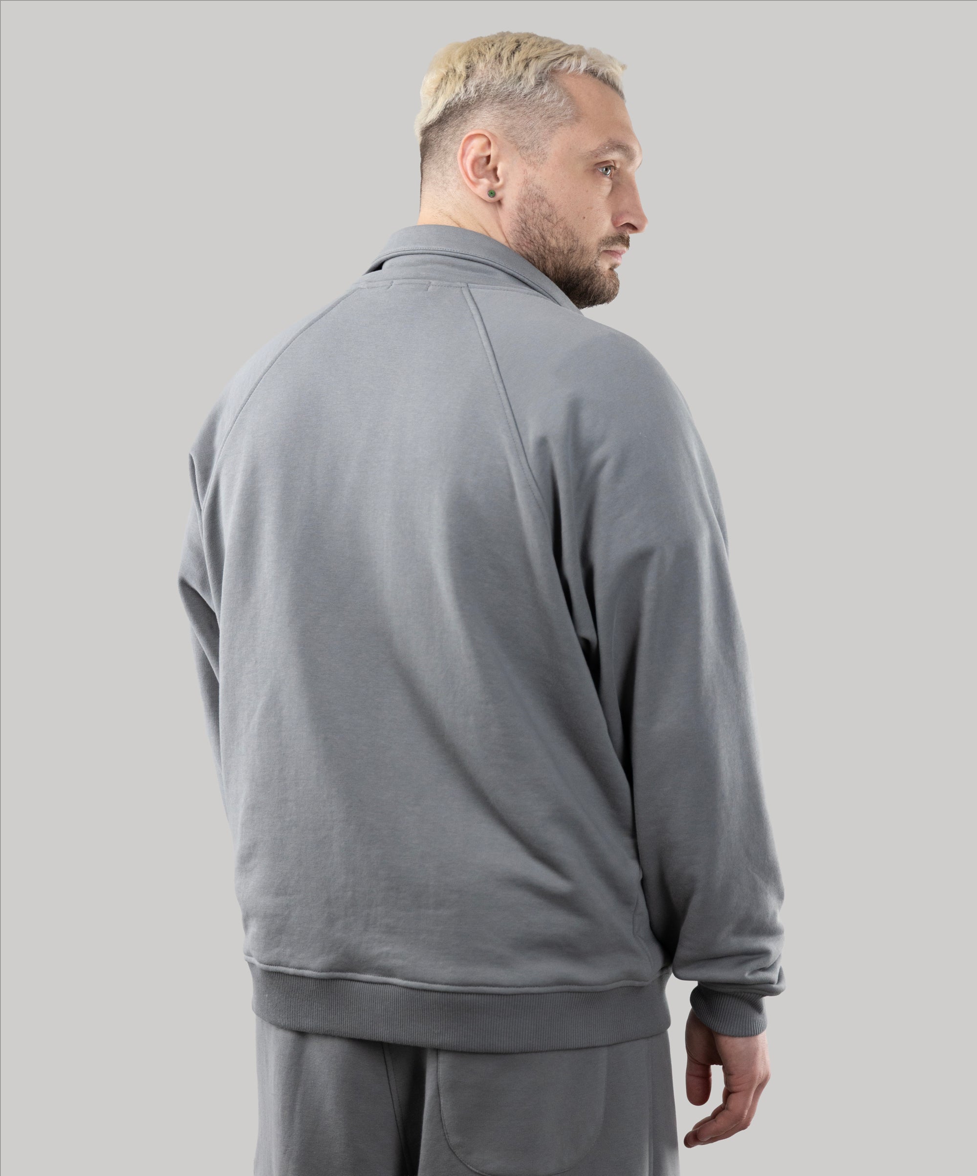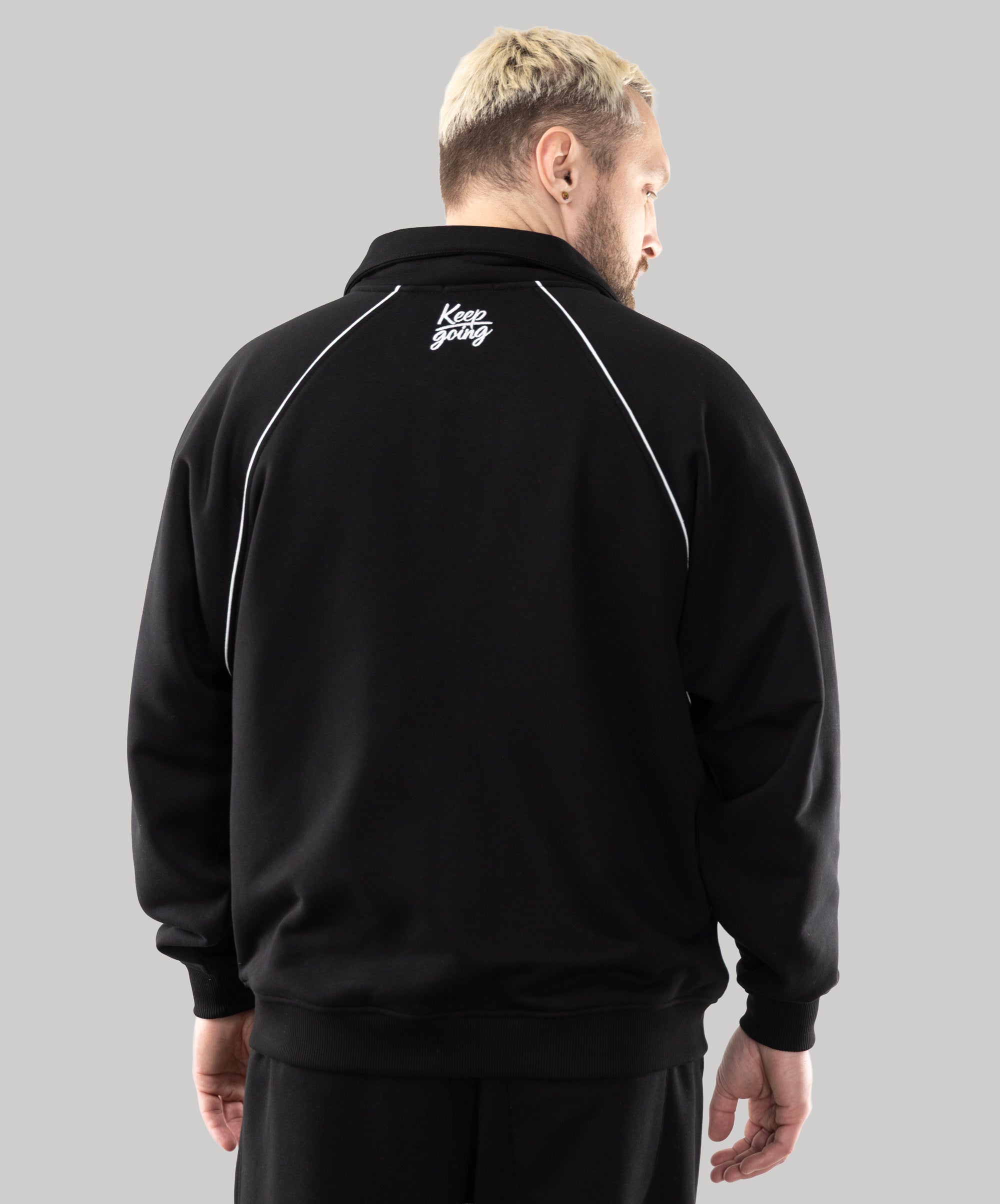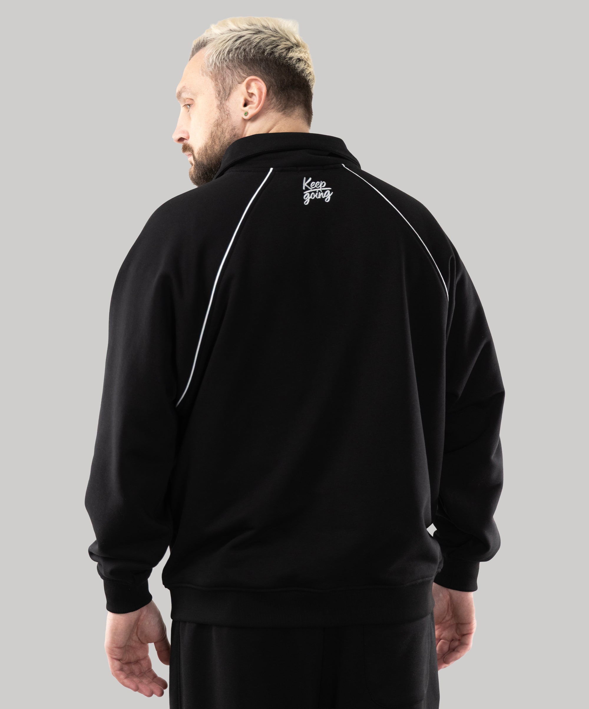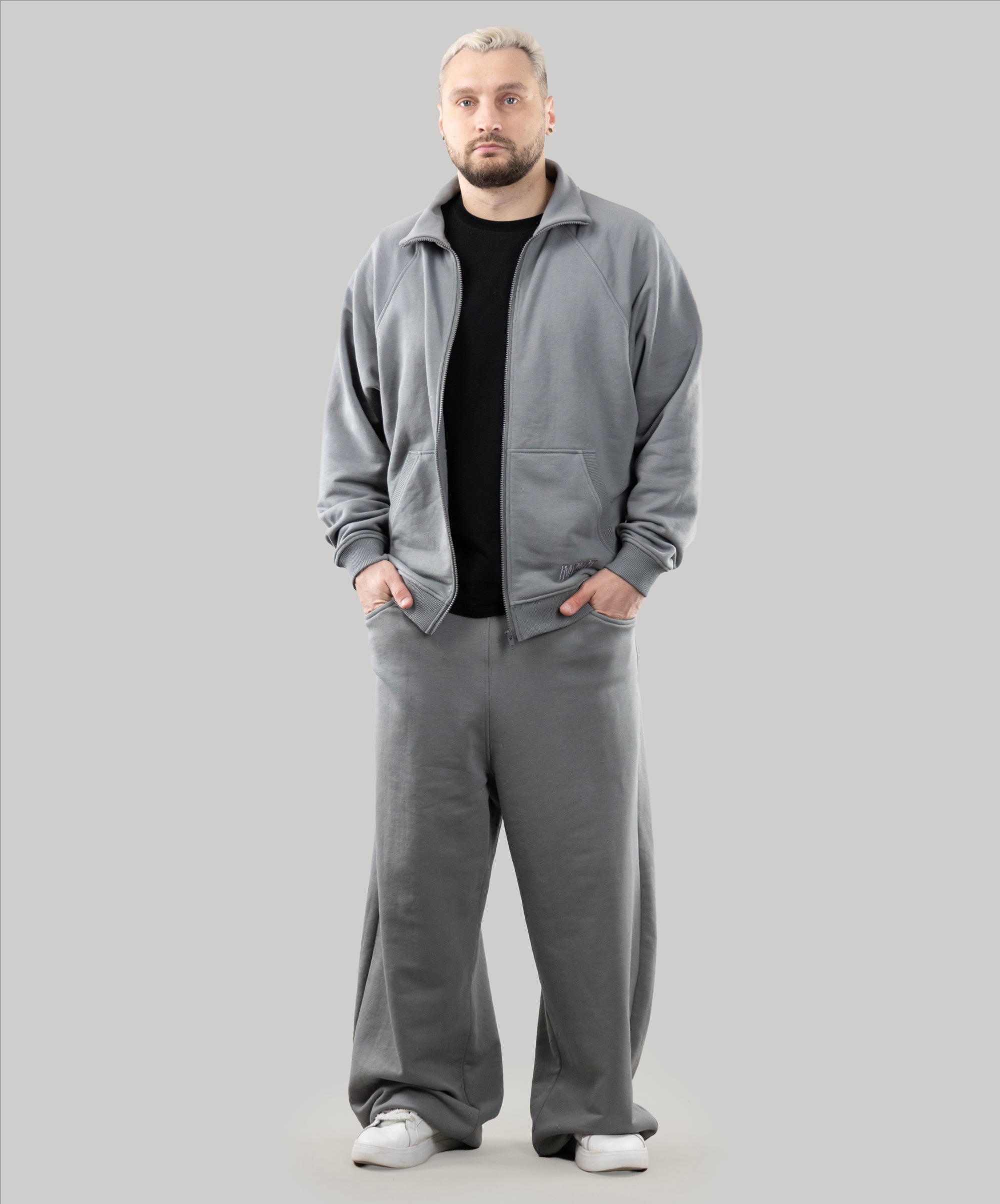 This is a model, suitable for men. Zip Sweatshirt "Vibe" goes well with sports pants, cotton joggers, and cropped pants from "Impact".