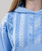 This is a model, suitable for women. Hoodie "Vyshyvanka" goes well with sports pants, cotton joggers, and cropped pants from "Impact".
