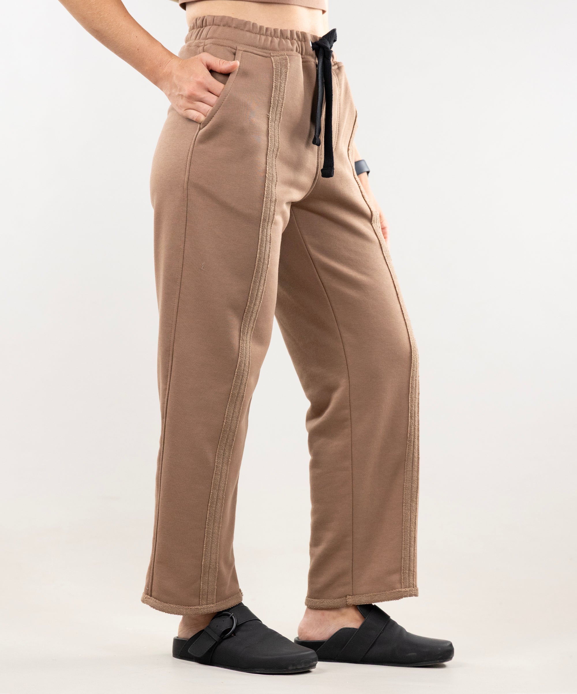 This is a model, suitable for women. Pants with Stitch Detail goes well with t-shirts, longsleeves, sweatshirts and hoodies.