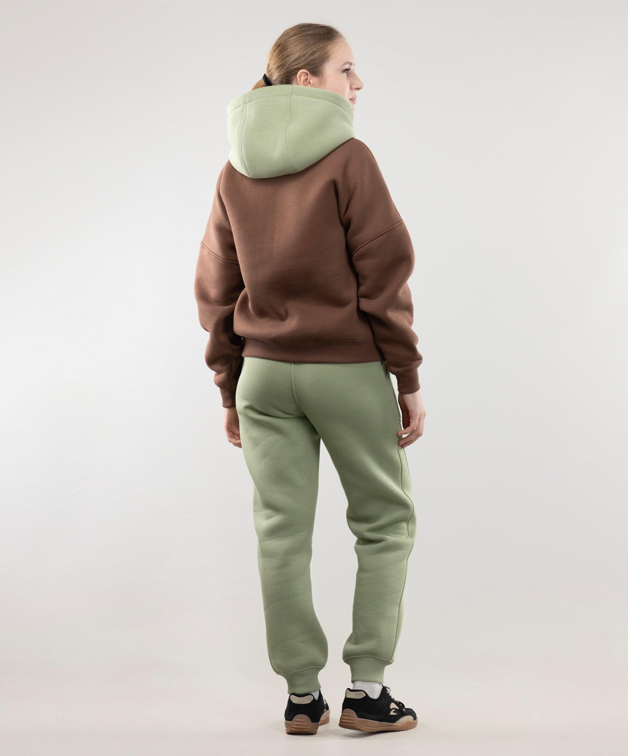 The waist is regulated with a ribbon and an additional cotton cord. Material – knitted fabric with a thick and warm fleece underlay. Different colors are designed to match our hoodies and sweatshirts.