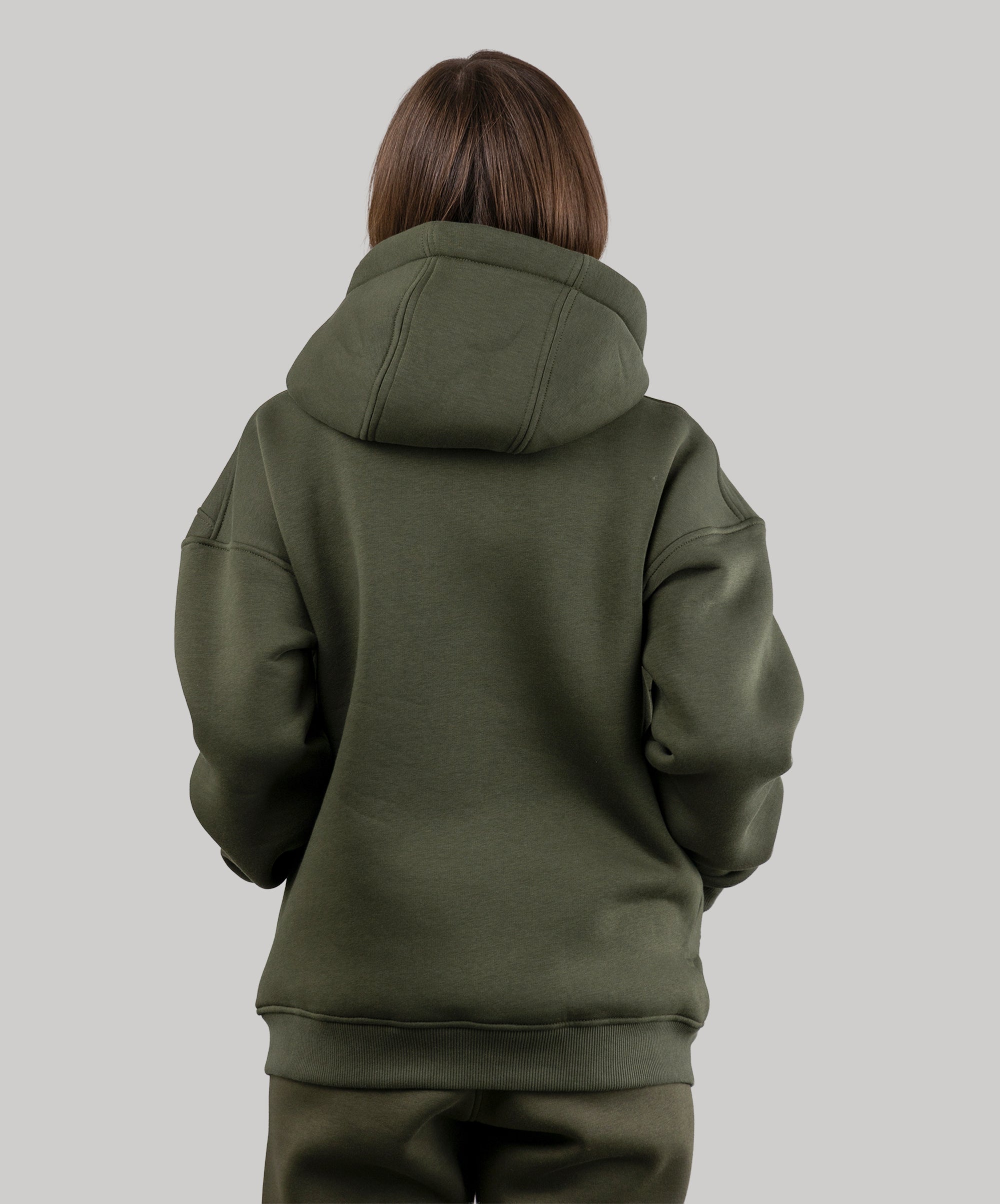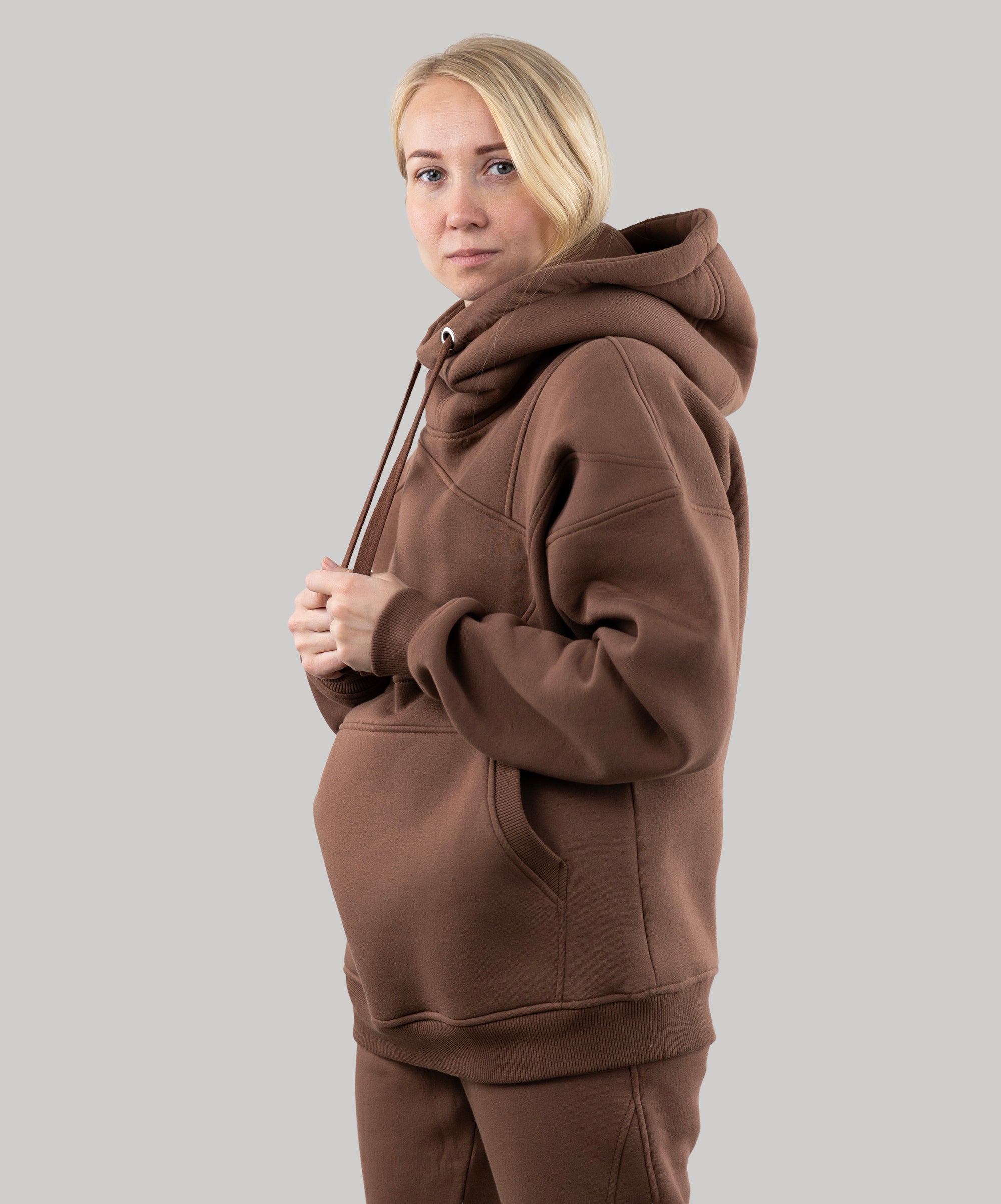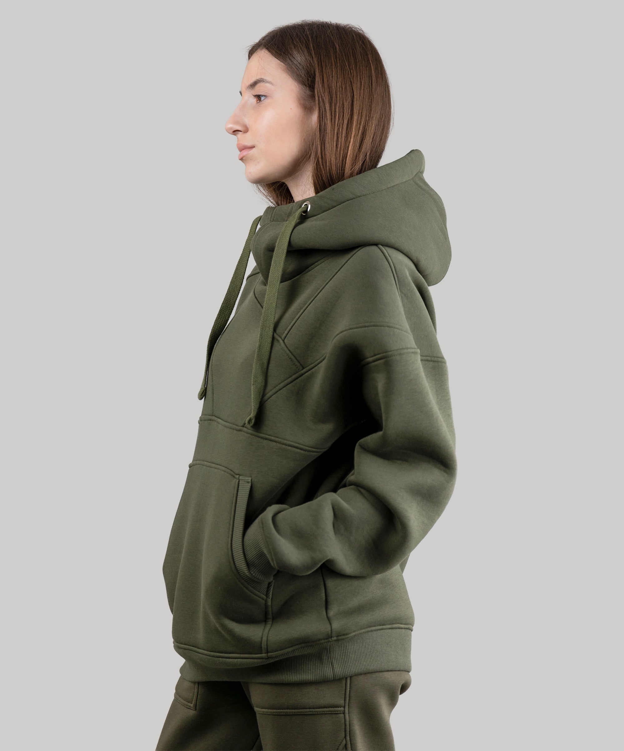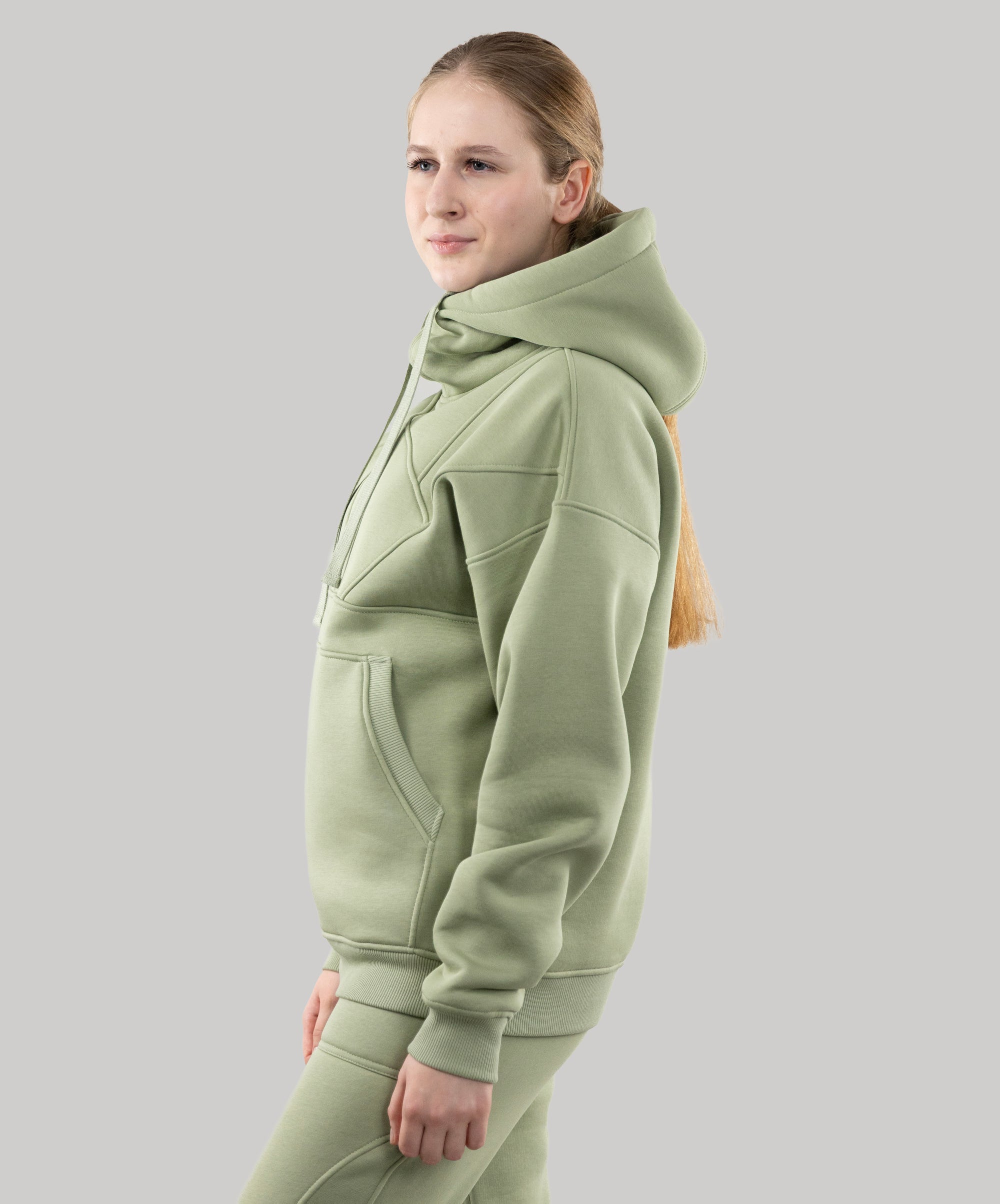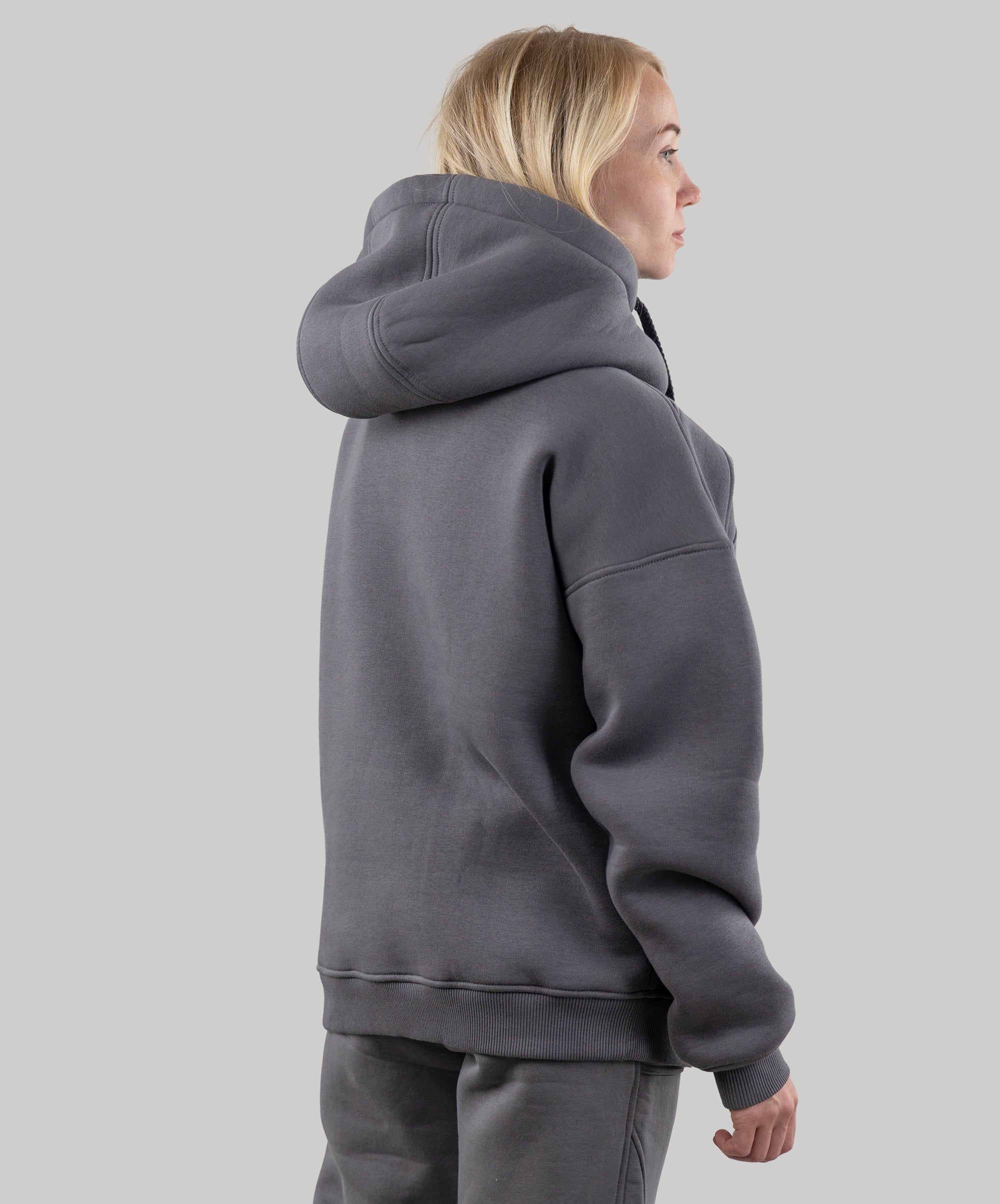 In addition to the high-neck hood, we have incorporated a complex polygonal design. The upper part of the hoodie is assembled from small quadrilaterals of various sizes, creating a pattern of seams. The elongated oversized fit ensures maximum comfort, while the fabric with a dense inner pile will keep you warm.