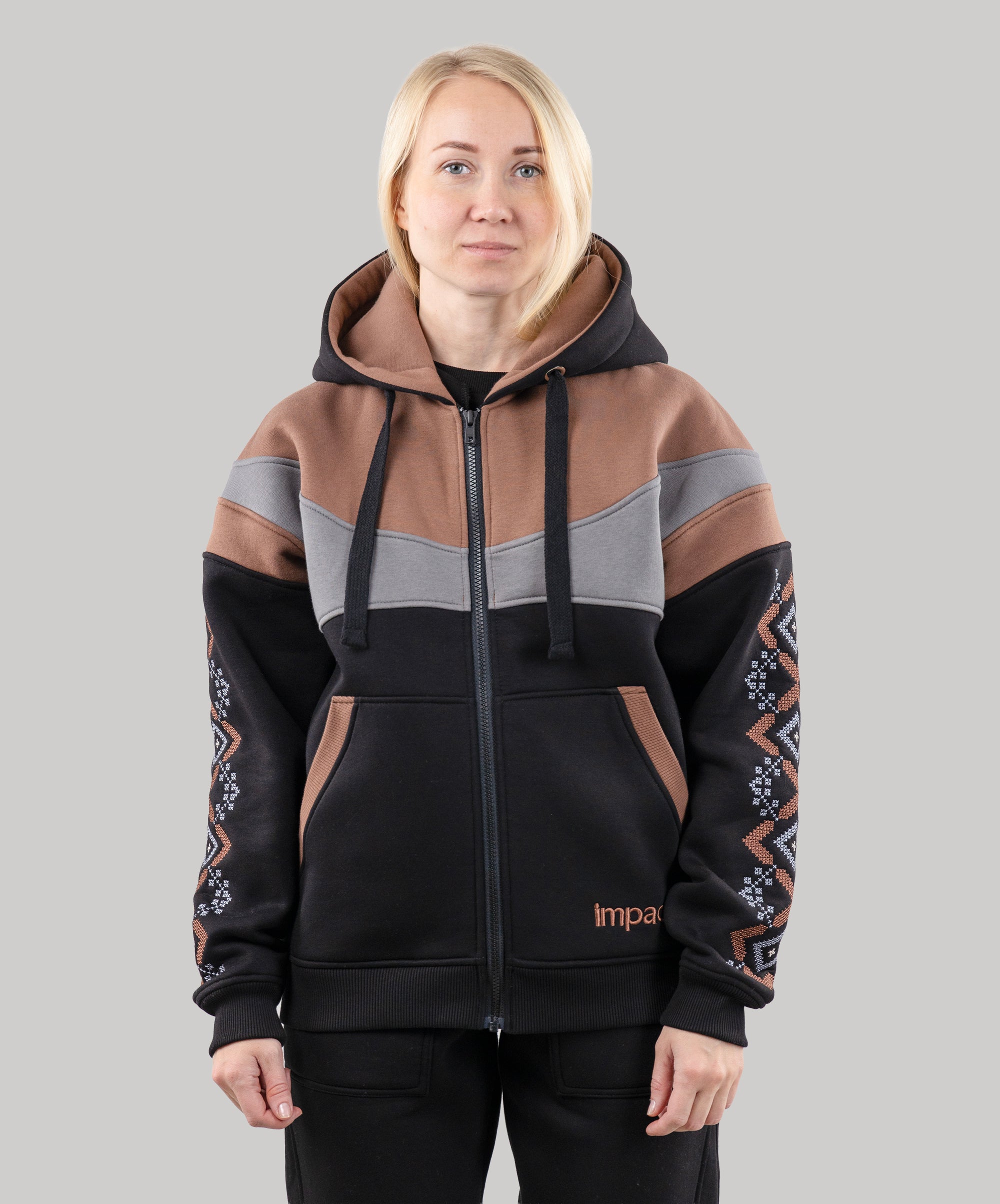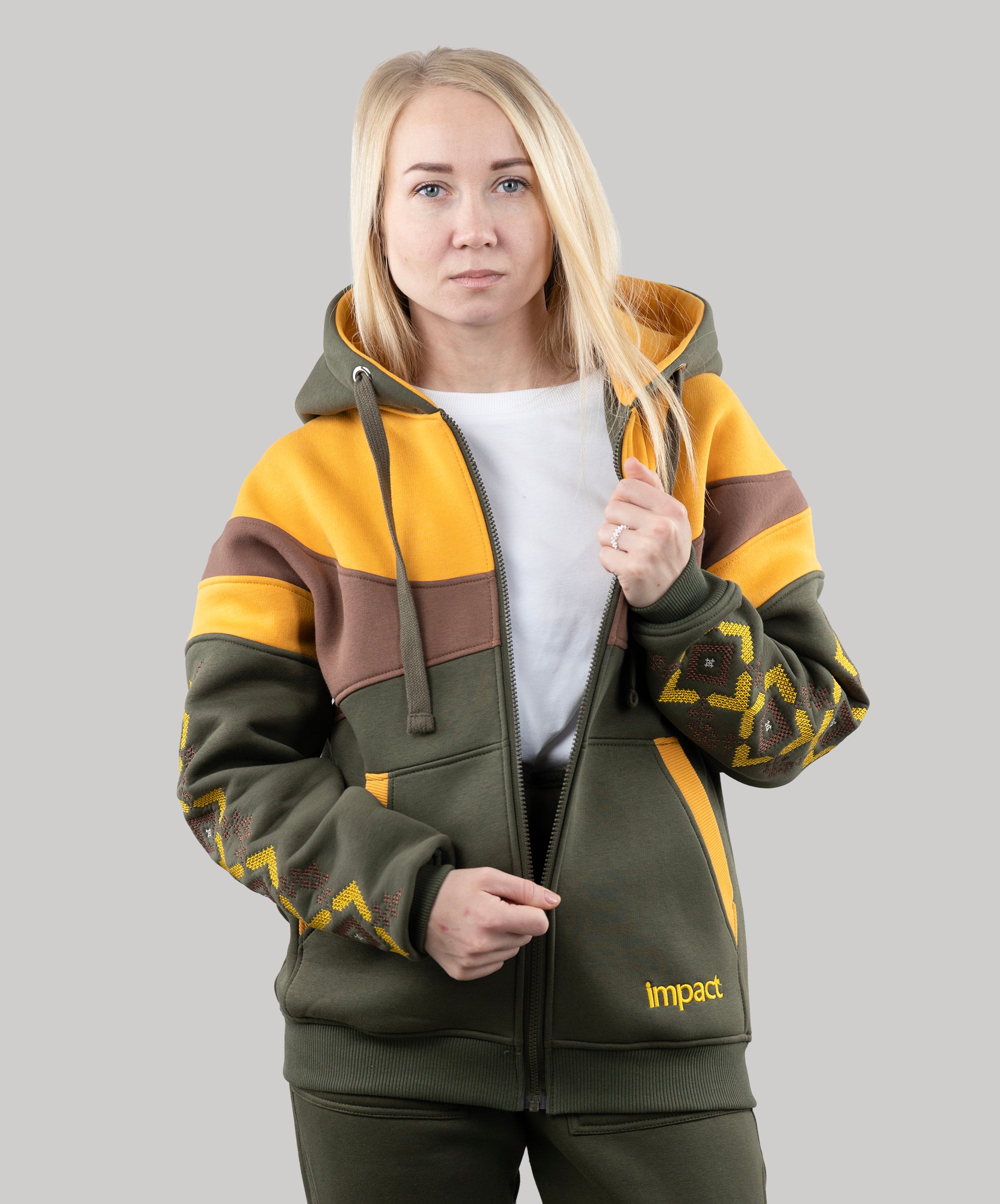 Zip-up hoodie "Sunrise" with Ukrainian embroidery