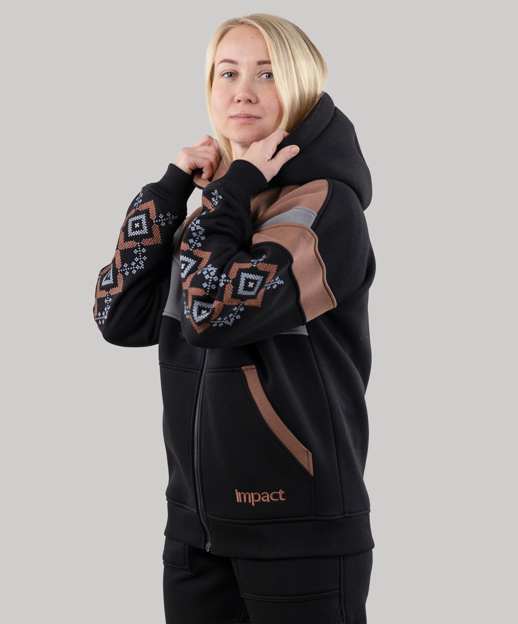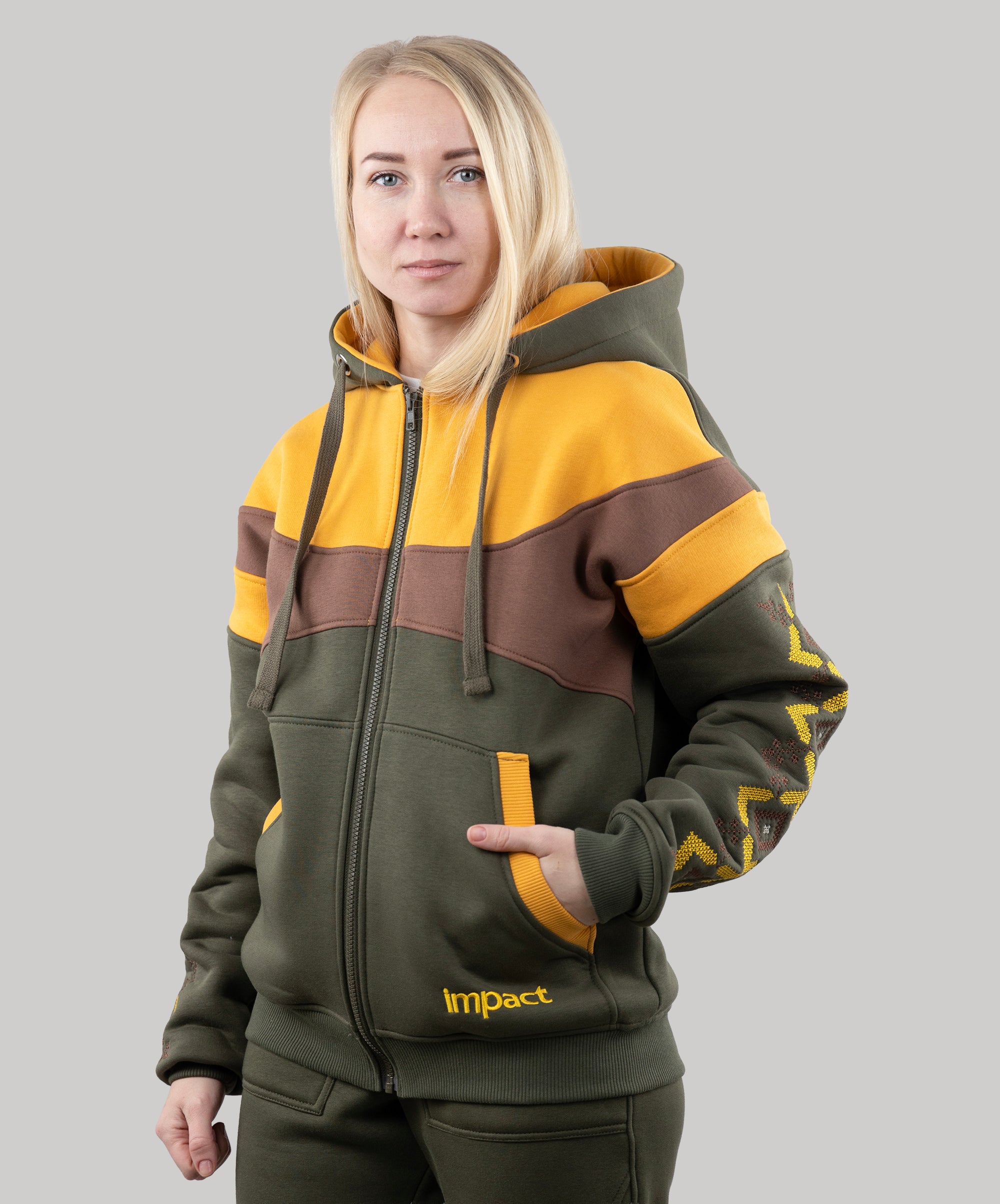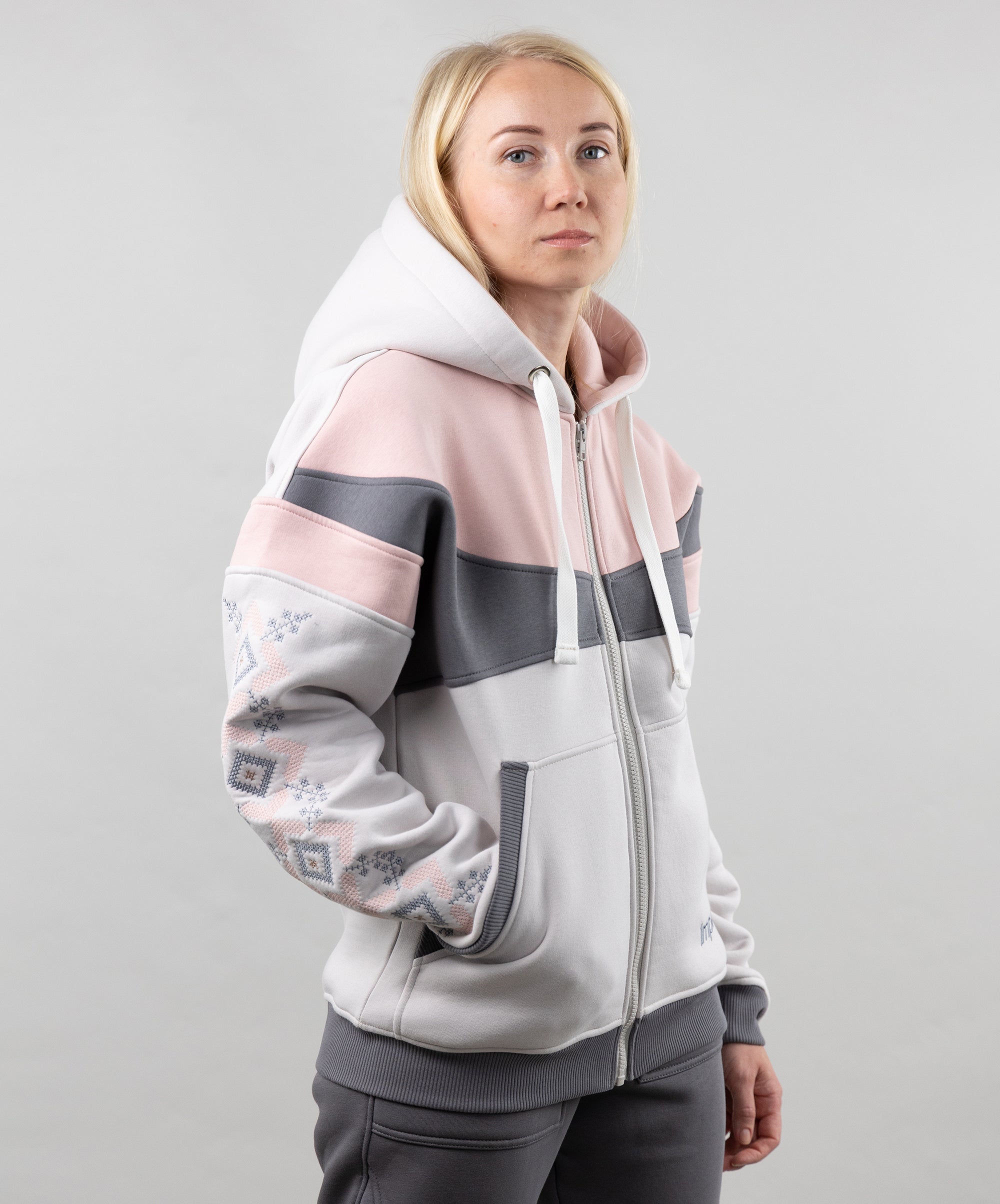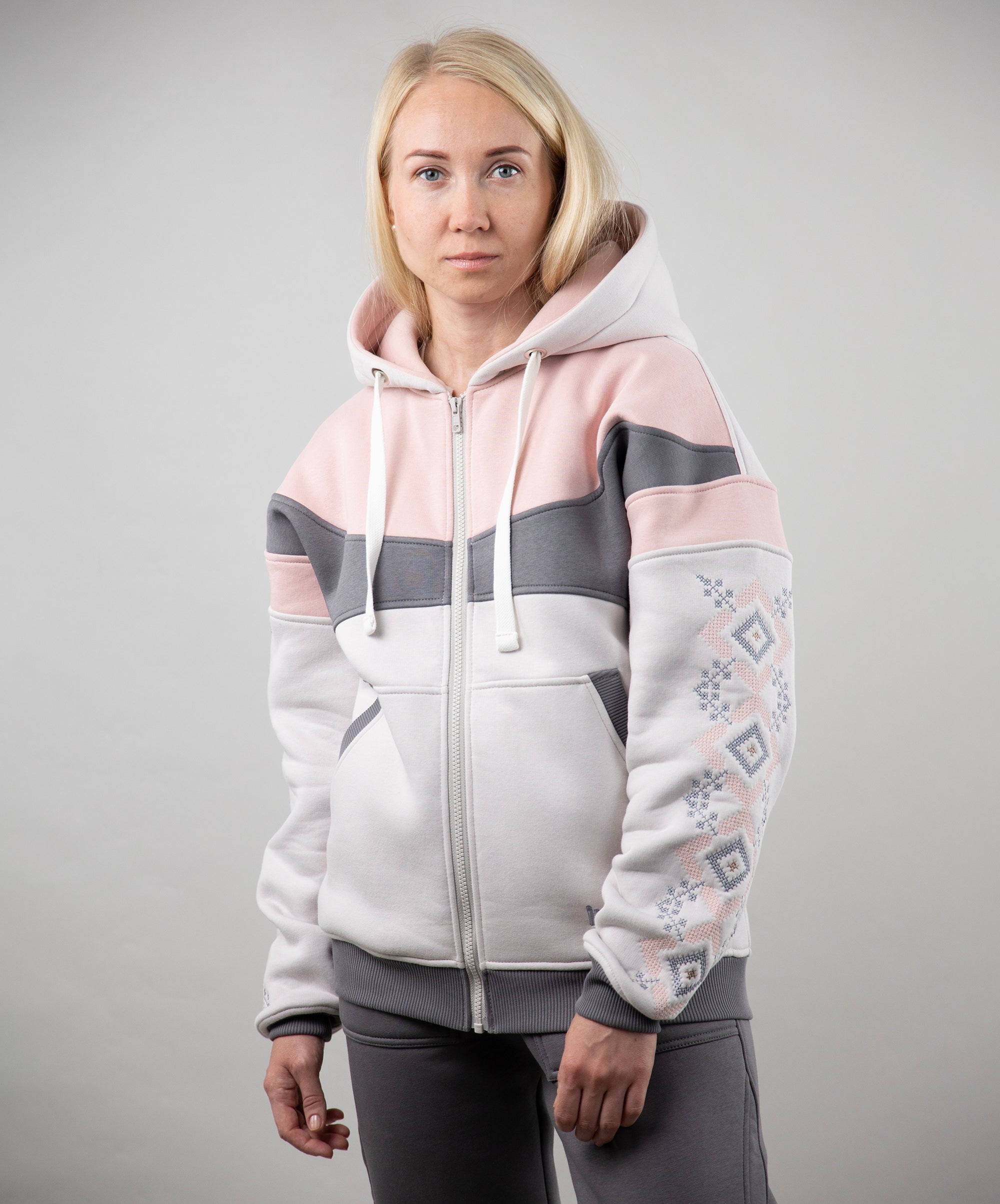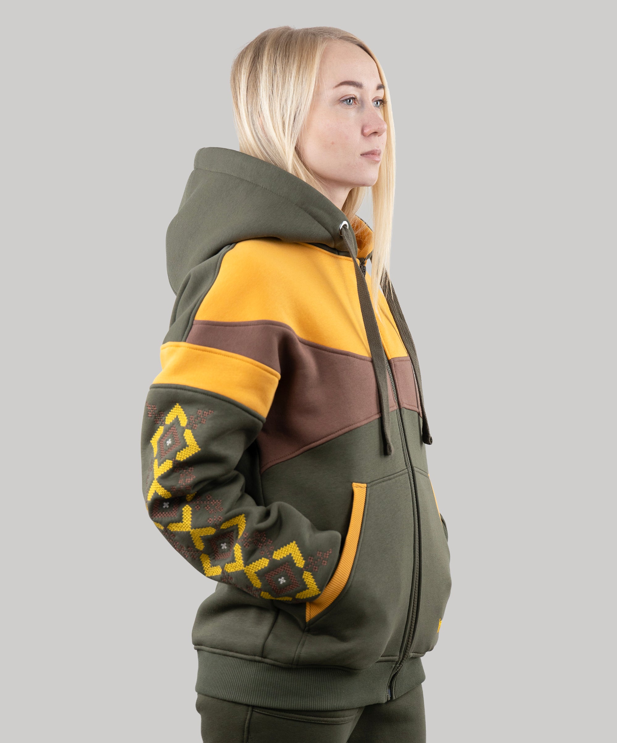 Zip-up hoodie “Sunrise”, Ukrainian vyshyvanka style hoodie for women
