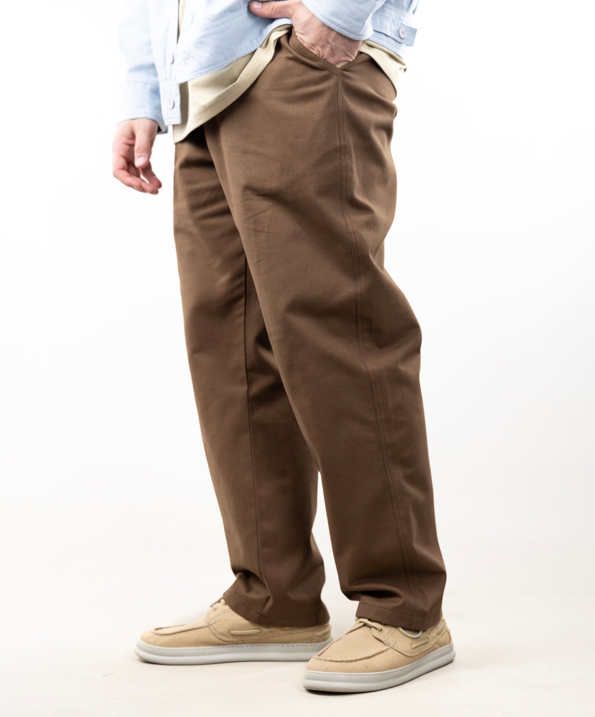 These are classic pants made of thick cotton with pockets that are fully functional. The shape is wide, slightly tapered to the bottom.