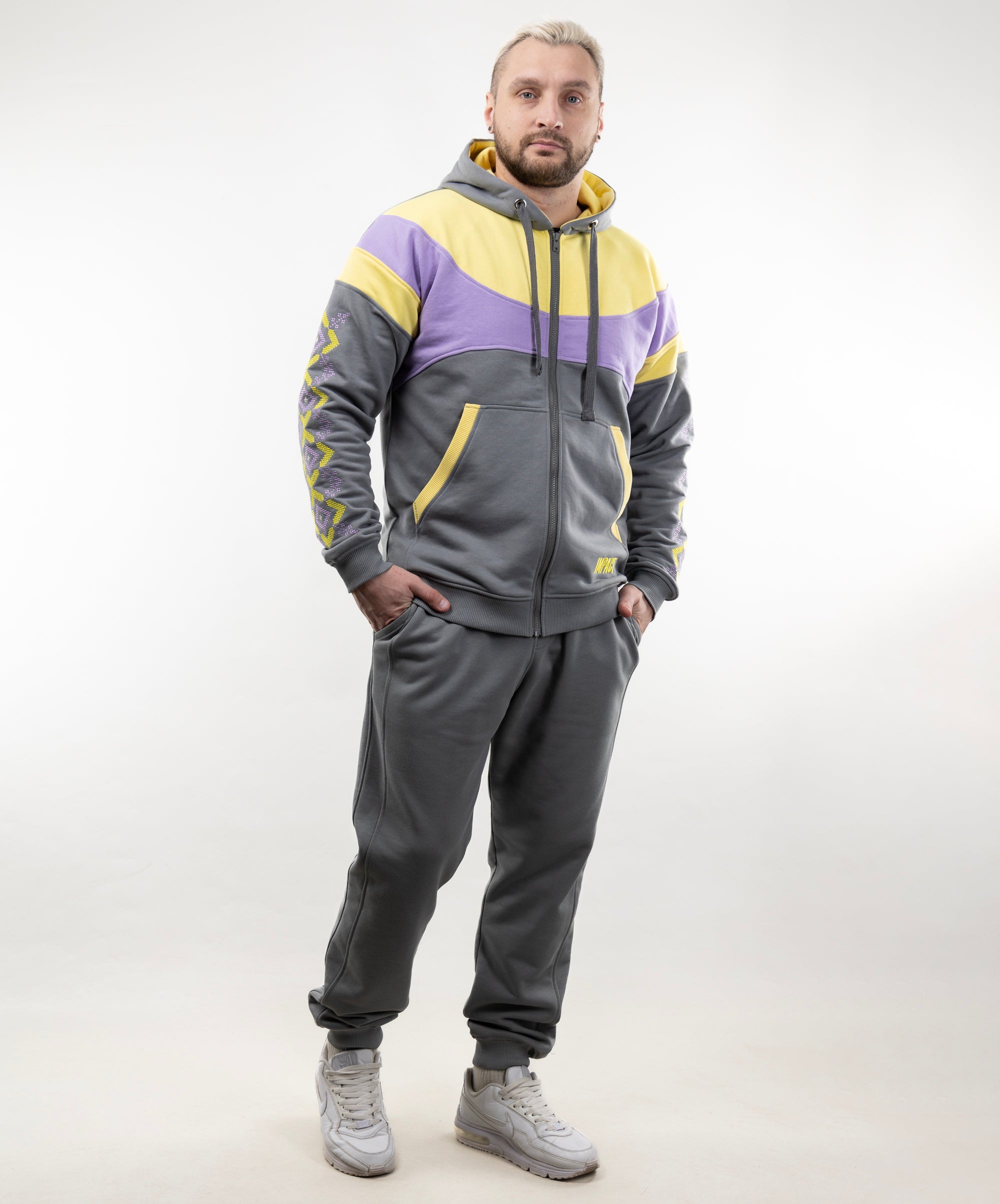 Zip-up hoodie “Sunrise”, Ukrainian vyshyvanka style hoodie for men
