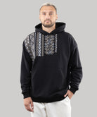 Meet the Hoodie Vyshyvanka, a perfect mix of tradition and everyday comfort. It is inspired by Ukrainian embroidery and features a unique black-and-white pattern on the front. This hoodie is durable, soft, and comfortable made from three-thread fleece without a warm underlay. Plus, it doesn't peel, so it stays looking great.