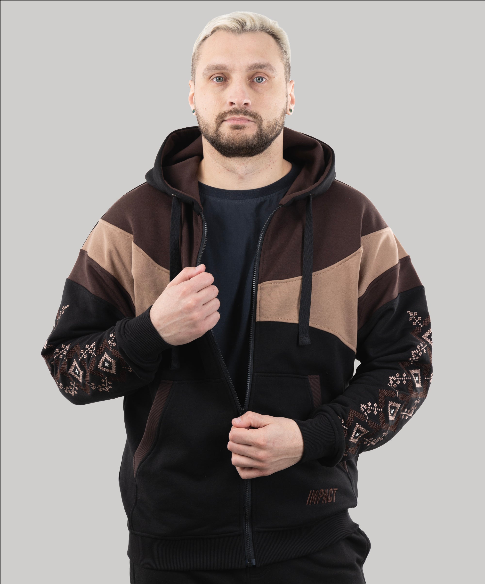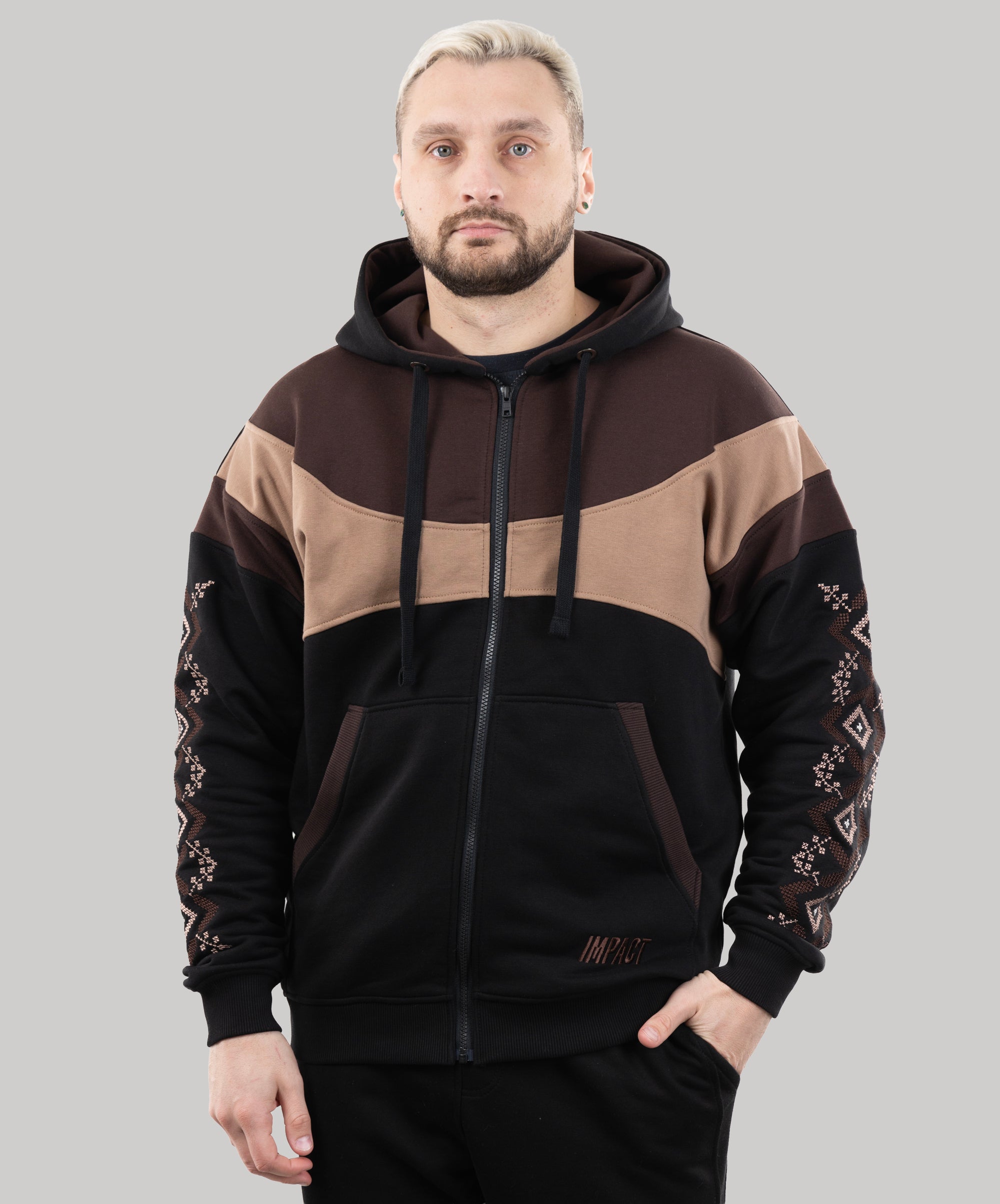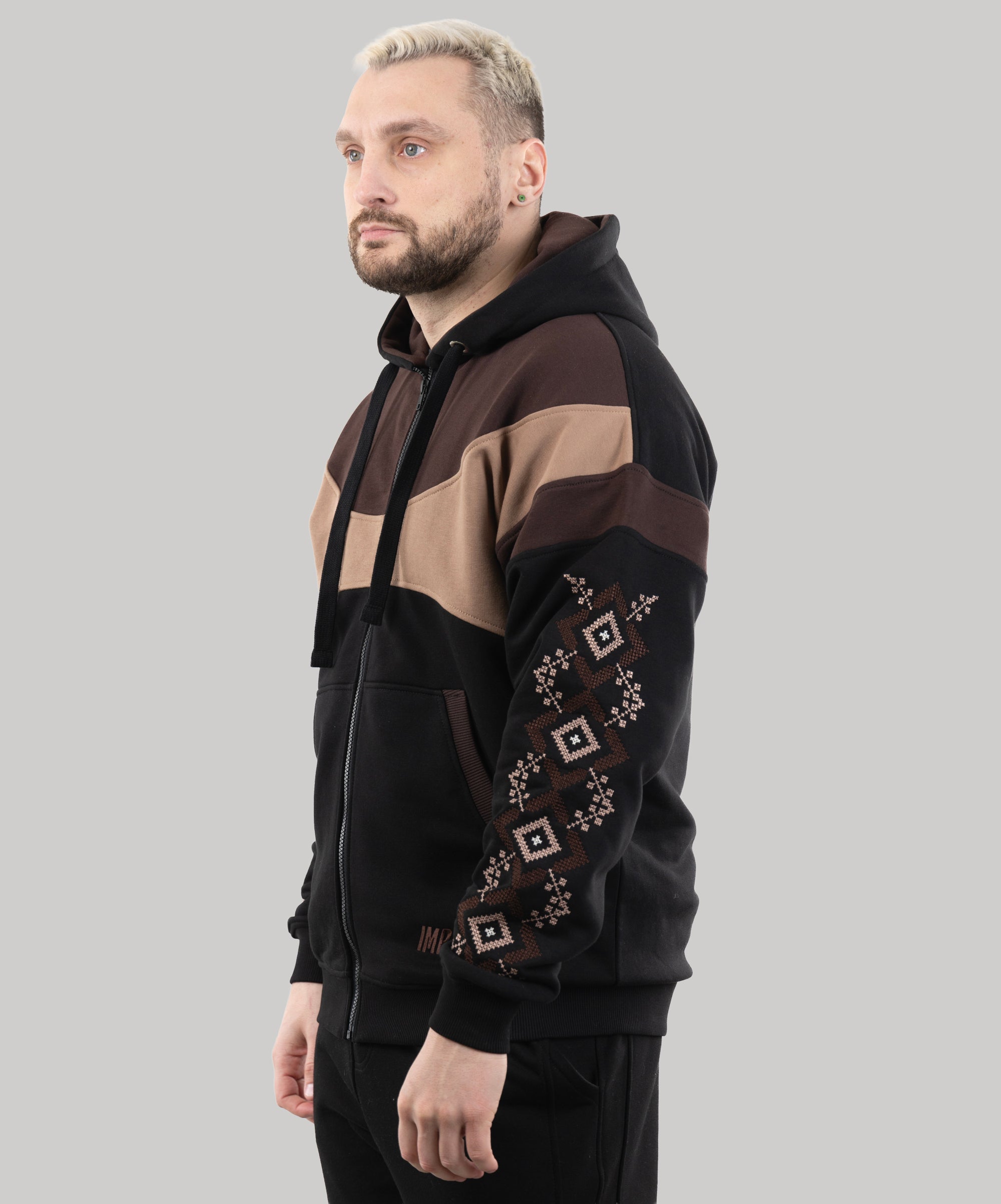 Zip-up hoodie “Sunrise”, Ukrainian vyshyvanka style hoodie for men
