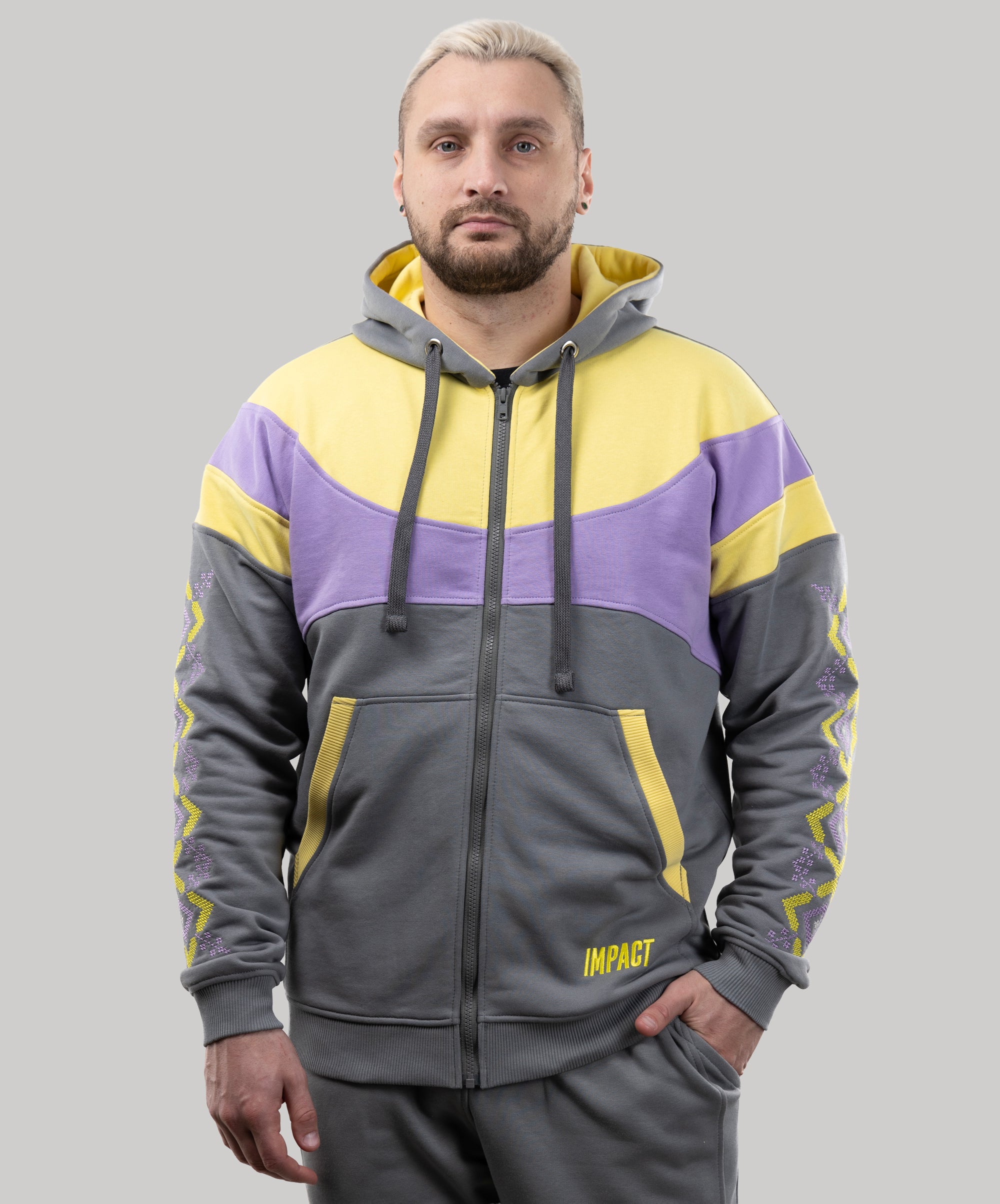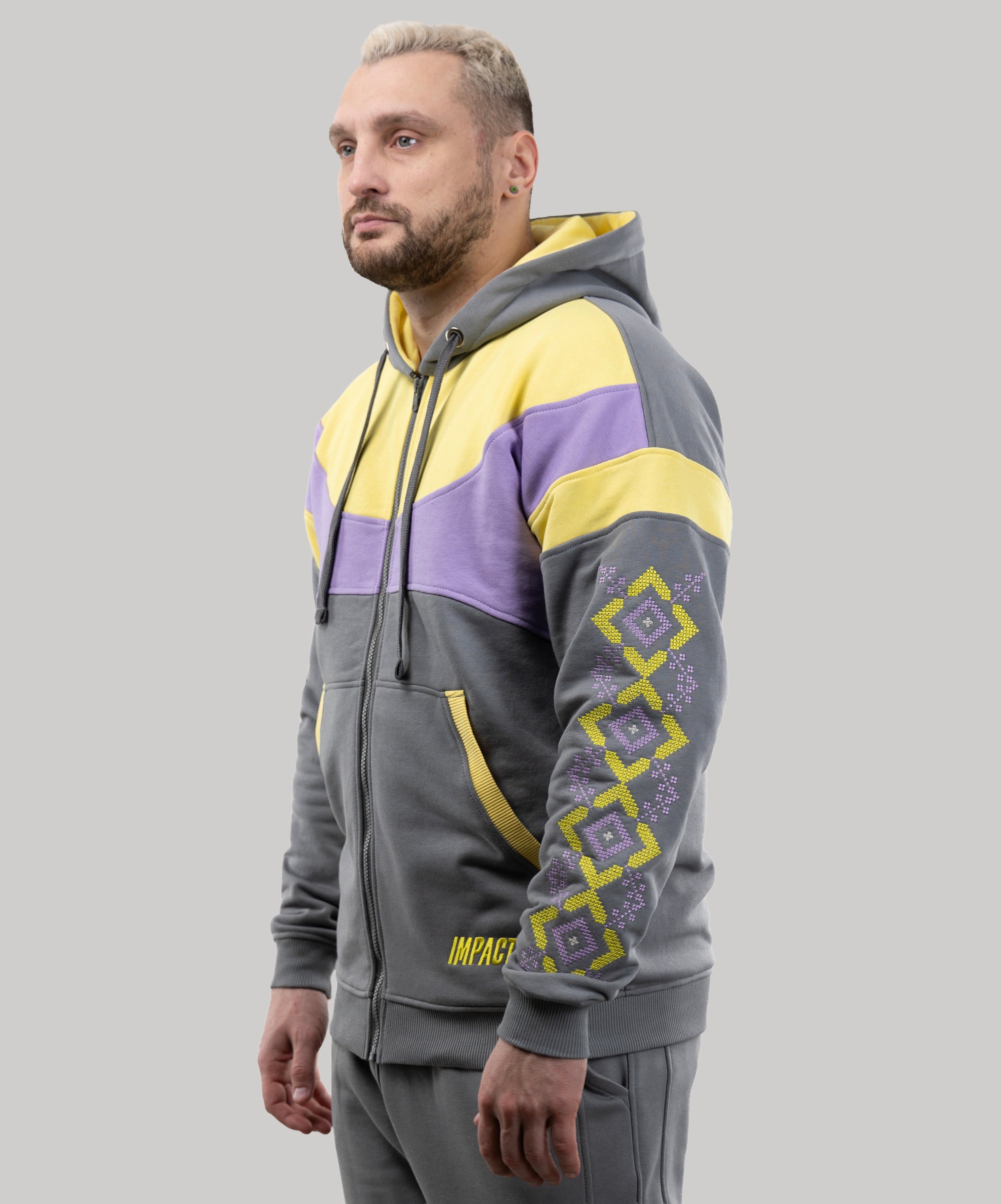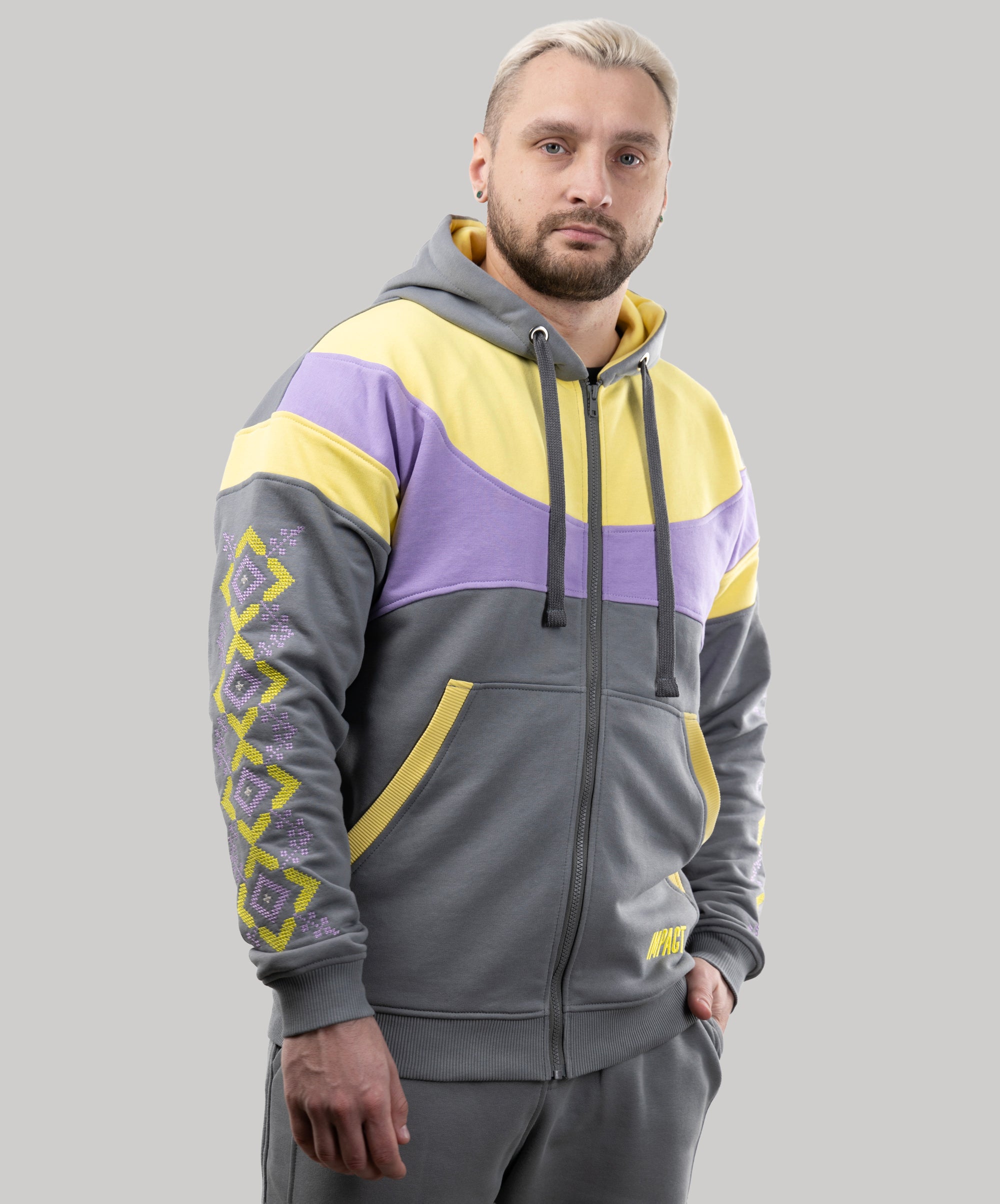 Zip-up hoodie “Sunrise”, Ukrainian vyshyvanka style hoodie for men
