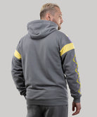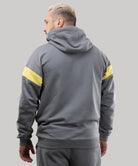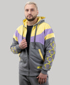 The uninsulated hoodie combines three colors and features large embroidery on the sleeves and a kangaroo pocket. The zipper is matched to the color of the main fabric, and the zipper manufacturer is the Japanese company YKK.