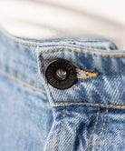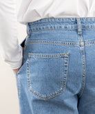 Light blue jeans made of 100% denim without stretch with fasteners on the hips. Thanks to their comfortable cut and versatile fit, they provide comfort and freedom of movement throughout the day.